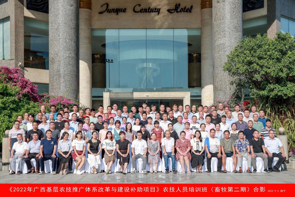 2022年9月4 -9日,为实施好2022年广西基层农技推广体系改革与建设补助项目,提升农技推广服务效能,在自治区农业农村厅和广西畜牧站大力支持下🫃🏼🚹,由我院承办的2022年广西基层农技推广体系改革与建设补助项目农技人员培训班(畜牧第二期) 在南宁举办。来自畜牧行业的项目管理人员和技术推广人员95名学员参加了培训。