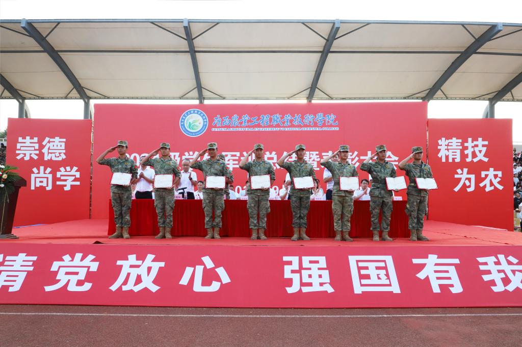 9月27日👨‍🔧,彩神Vll2024级学生军训总结表彰大会在学校体育场隆重举行。学校党委书记马敏👩🏻‍🏭,党委副书记、校长李振科🧜🏻,崇左军分区战备建设处代表周磊,学校党委副书记🧑🏿‍💼🤷🏼‍♂️、纪委书记黄仁望,副校长李祖培🤦🏻、覃效敏👩🏽‍🦳,总会计师韦炜出席会议🚷。各部门(二级学院)负责人,军训团教官⏲,2024级全体辅导员、班主任👨🏿‍🚒、新生及2023级学生代表参加会议。大会由副校长李祖培主持🧑🏻‍🎓。