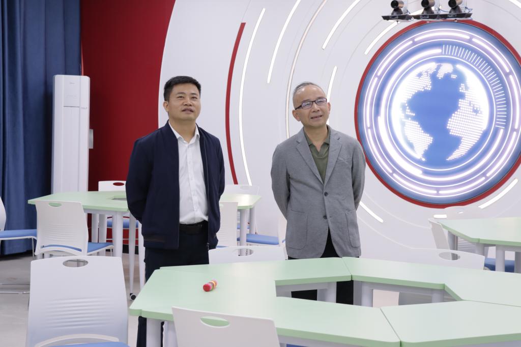 梁杰一行在参观马克思主义学院智慧教室